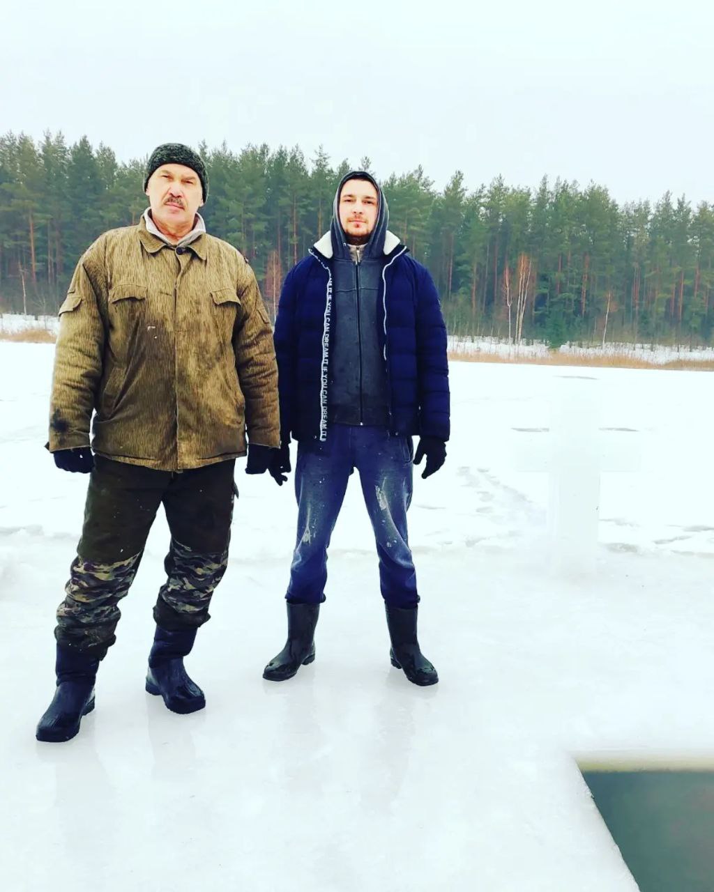 Купель по многолетней традиции готовят работники лесхоза - отец и сын Сергей и Владимир Лагунёнки (на фото), а также Андрей Данилевич.