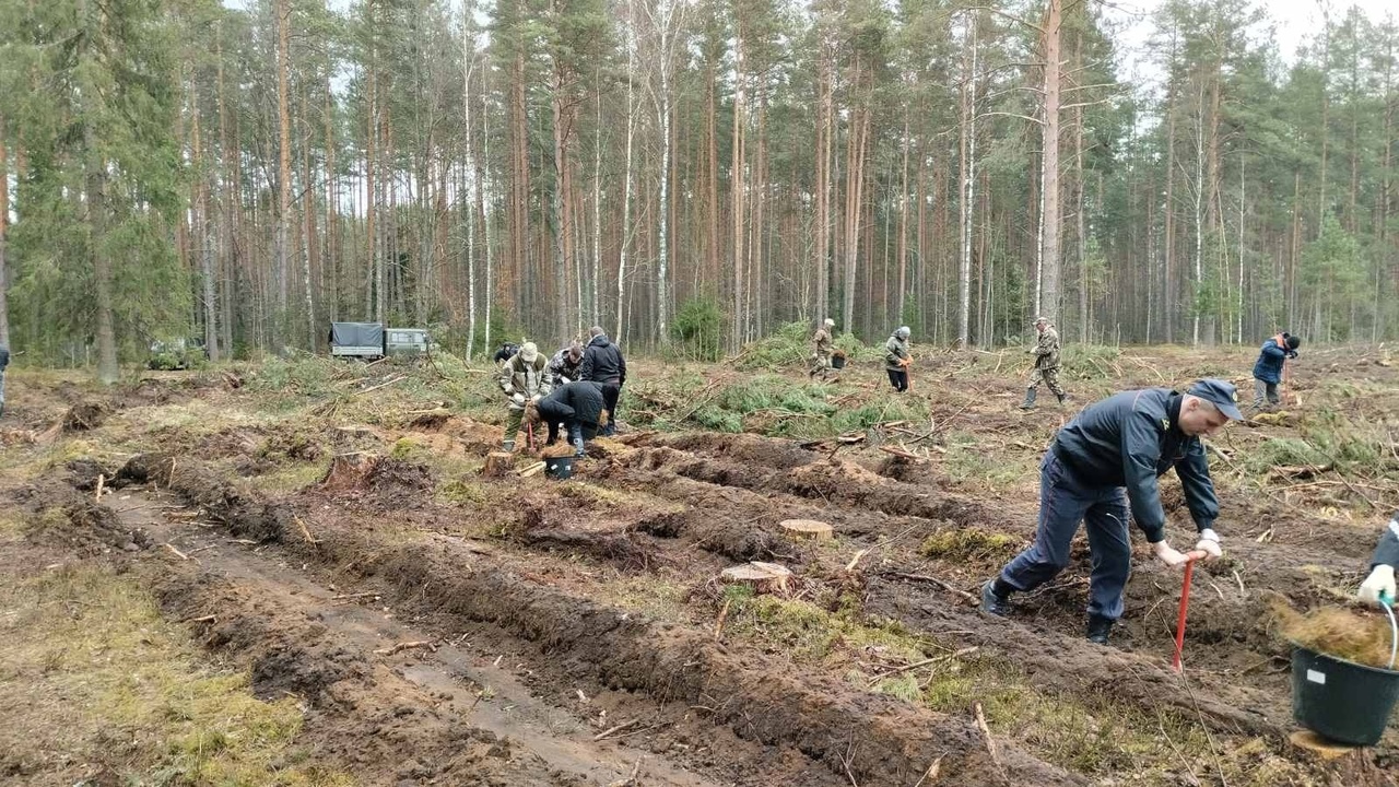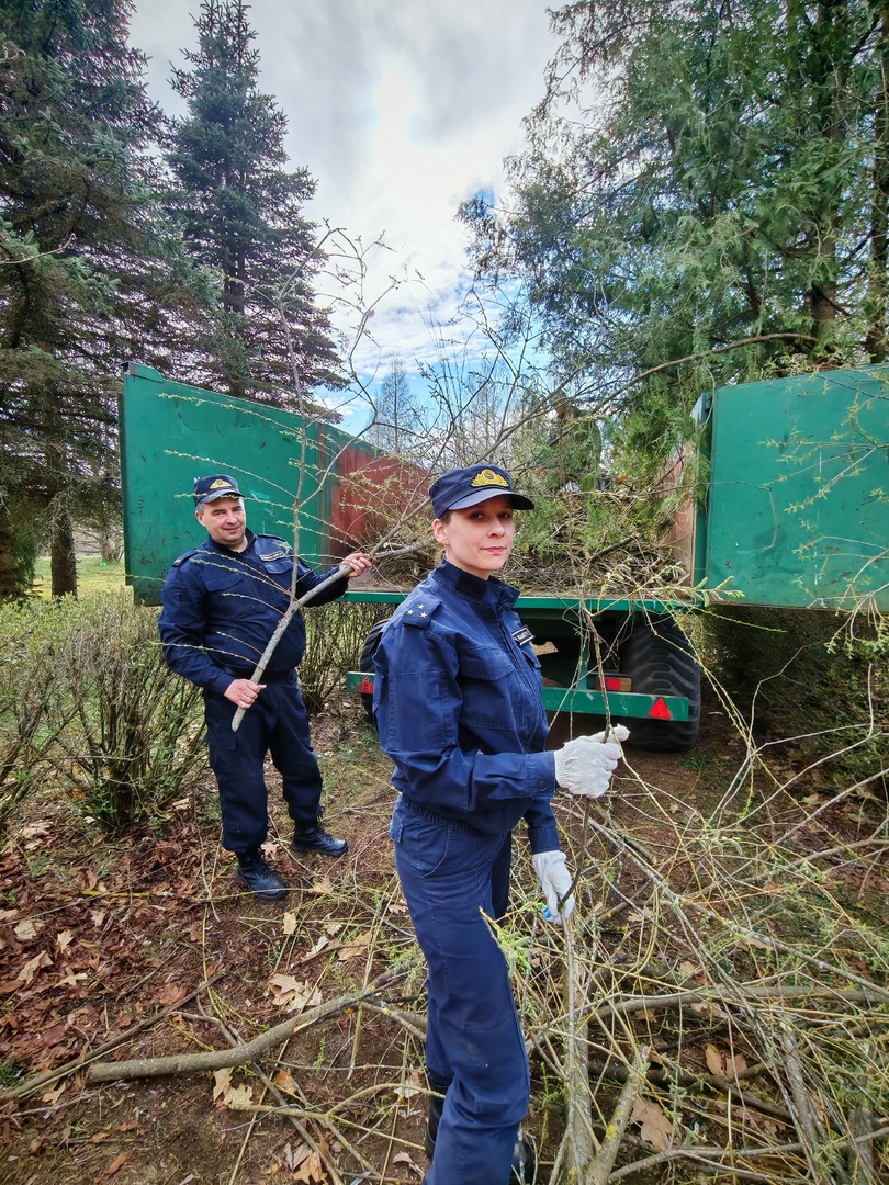 Утром сотрудники РОВД осуществляли посадку лесных культур, а после обеда, не зря сегодня чистый четверг, приложили свою помощь в наведении порядка в дендропарке.