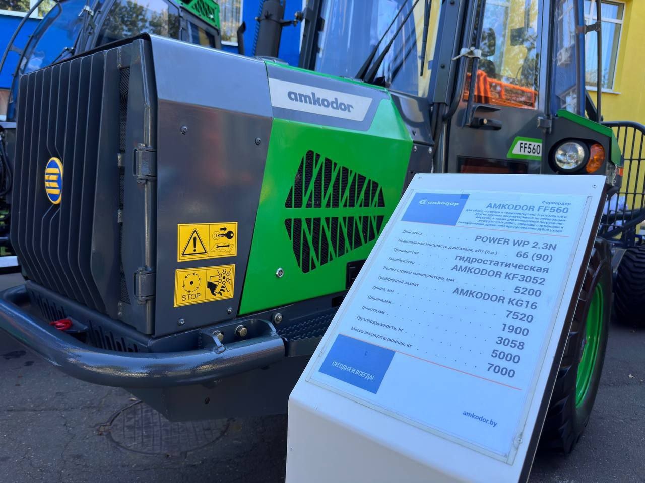 Предприятие - основной производитель многооперационной лесозаготовительной техники в республике. По лесным дорогам страны сегодня колесят более 600 харвестеров и форвардеров этой марки (!) С новинками отечественного производства сегодня ознакомился Премьер-министр Роман Головченко, заместитель Премьер-министра Виктор Каранкевич. В числе приглашенных гостей - заместитель министра лесного хозяйства Владимир Креч и другие лица. Председатель Совета директоров ОАО "Амкодор" - управляющая компания холдинга" Александр Шакутин презентовал почетным гостям созданные опытные образцы и поставленные на серийное производство машины "Амкодор". Среди них - лесопогрузчик AMKODOR FL70H, харвестер AMKODOR FH840 и форвардер AMKODOR FF560.