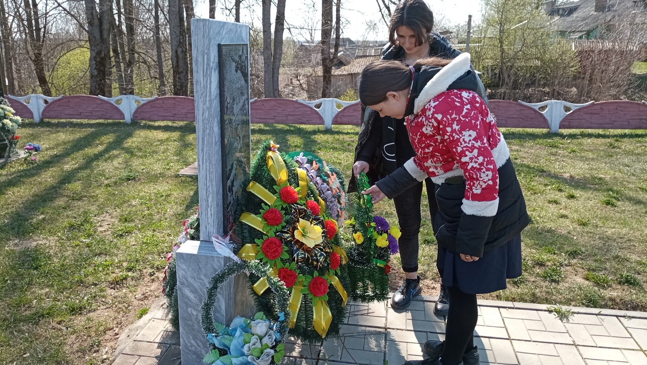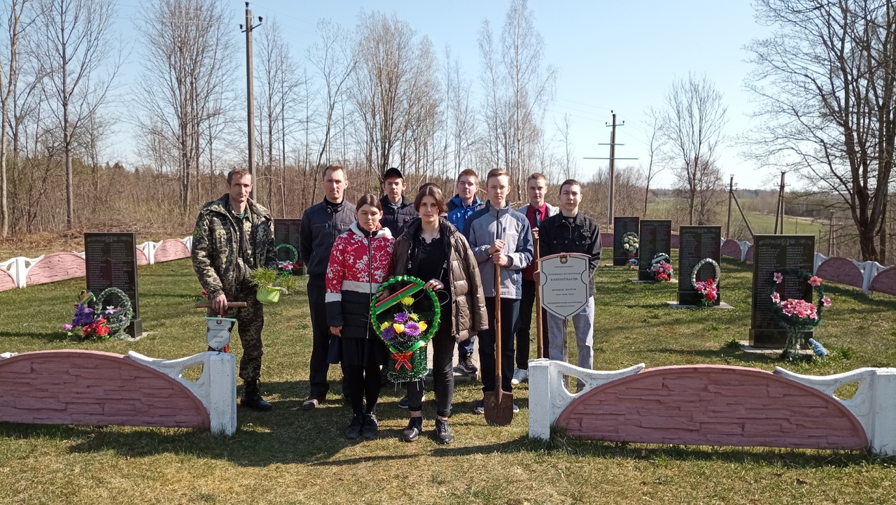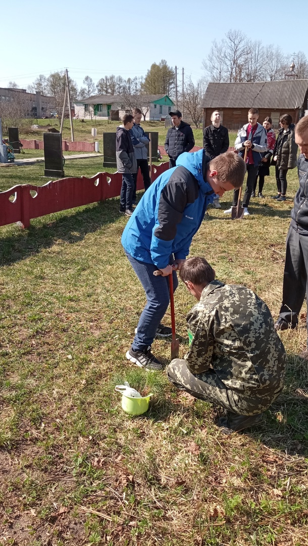 Не стоит забывать о воинских захоронения. С ребятами из Велешковичской СШ дополняли, созданную ими пару лет назад, небольшую аллею из сосен.